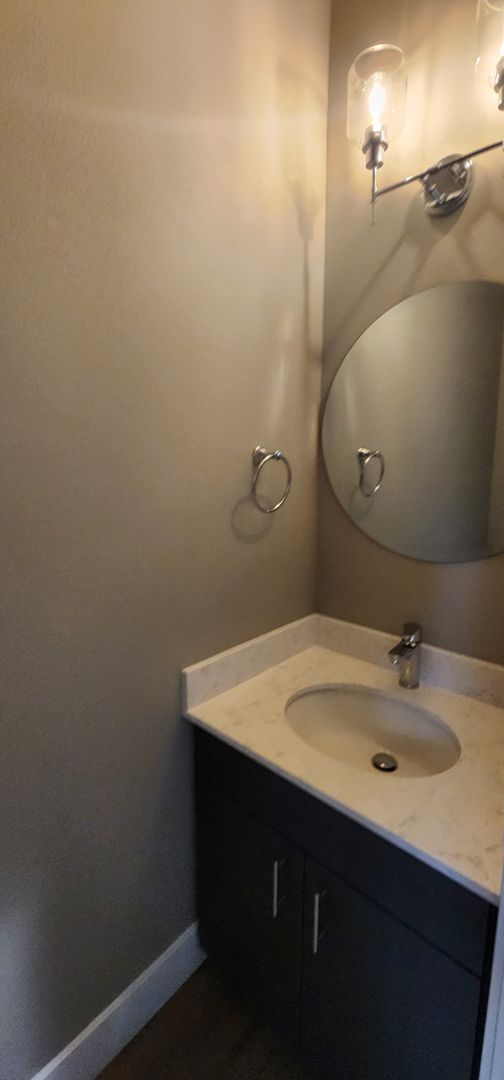 This beautiful three bedroom, two-and-a-half-bathroom townhouse is very modern with thoughtful updates throughout. Downstairs you'll find an open floor plan with gorgeous laminate flooring, stainless steel appliances, beautiful cabinetry, recessed lighting and a half bathroom. There is easy access to the garage and right off the kitchen there is a small patio and large fenced yard.